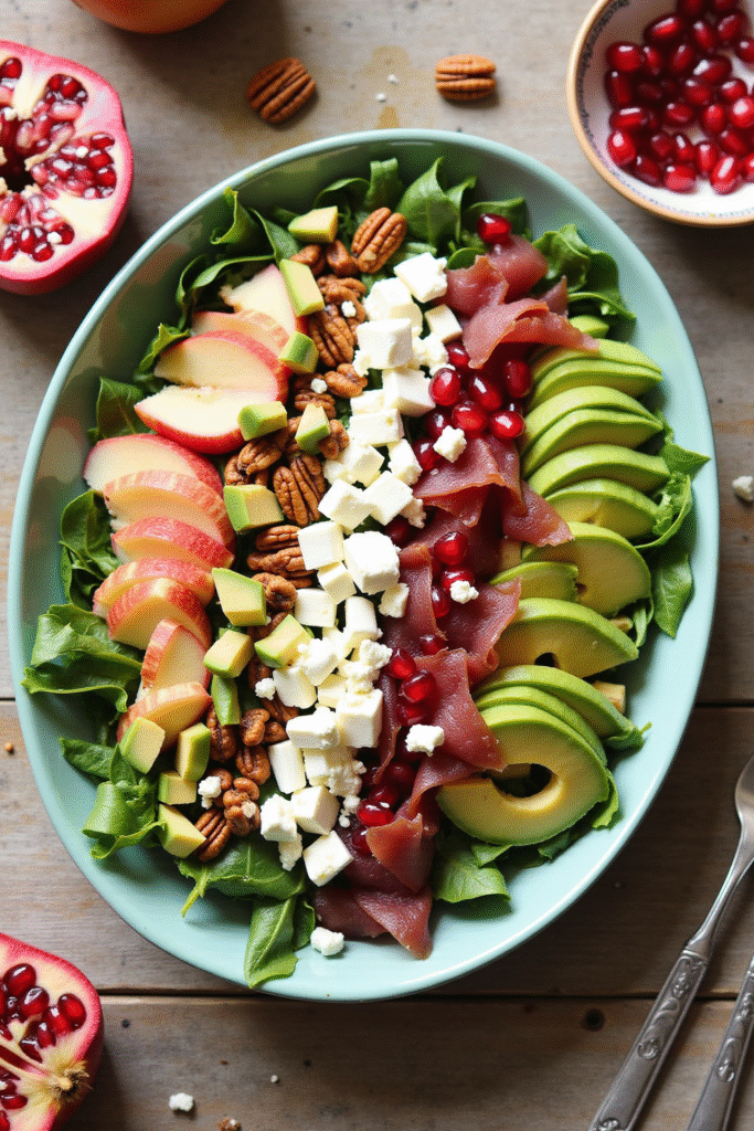Serve this salad as a vibrant lunch, a side at a holiday gathering, or as a light, wholesome dinner topped with grilled chicken or salmon. Pair it with crusty bread or a cup of butternut squash soup for a cozy, complete meal. For a stunning presentation, arrange apple slices and feta crumbles on top and add a few fresh pomegranate arils for a burst of color.