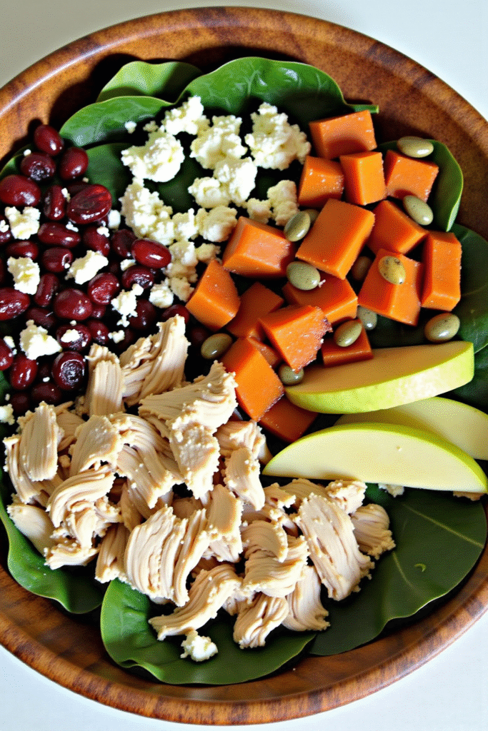 This salad’s appeal comes from the way fresh ingredients play off each other. Tender baked sweet potato, crisp apple, protein-rich chicken, and a mix of greens like kale or spinach set the foundation. A simple yet bold maple Dijon dressing ties everything together with just the right balance of tang and sweetness. Add-ins like dried cranberries, pecans, and feta cheese create those irresistible bites you’ll crave all season.