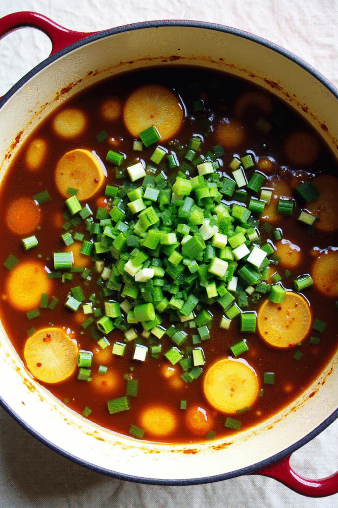 - Stir in the tofu, white beans or edamame, scallions, and soy sauce. Simmer for another 3–5 minutes to warm through.