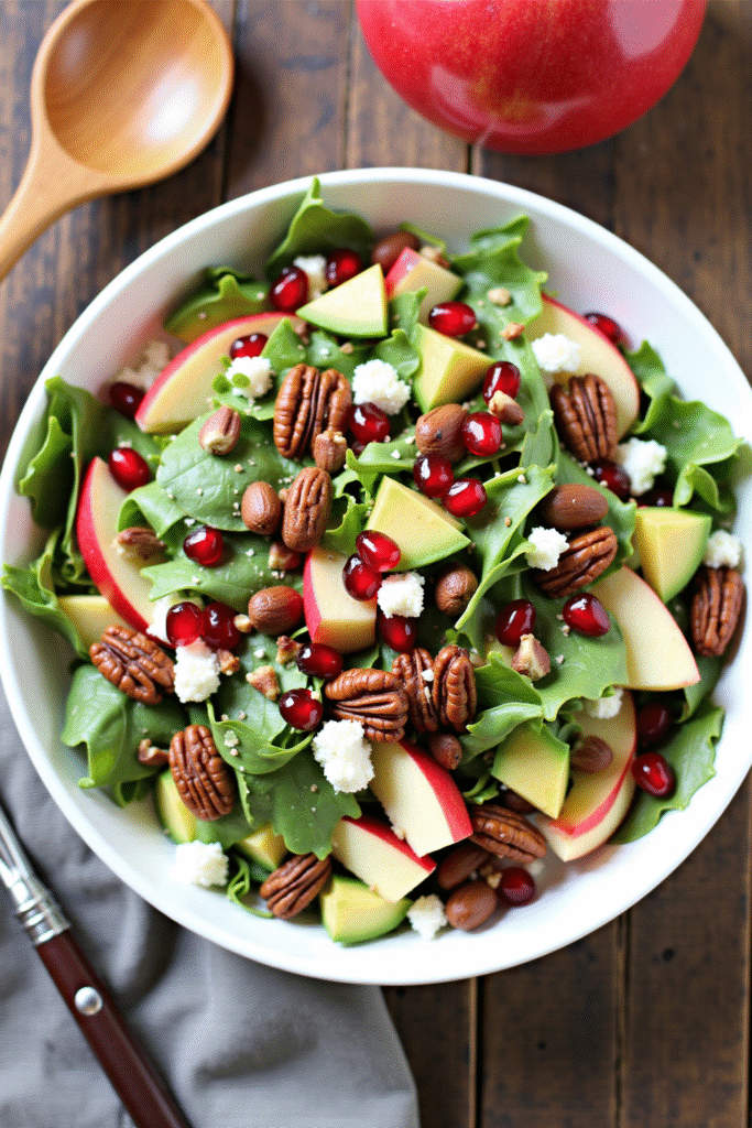 Slicing apples thinly ensures every bite is lightly sweet yet balanced. Pair them with a tangy homemade vinaigrette—think apple cider vinegar, a hint of maple syrup, and a drizzle of extra-virgin olive oil. Gently combine the greens, apples, feta, and nuts, then lightly dress just before serving to keep everything crisp and fresh.
