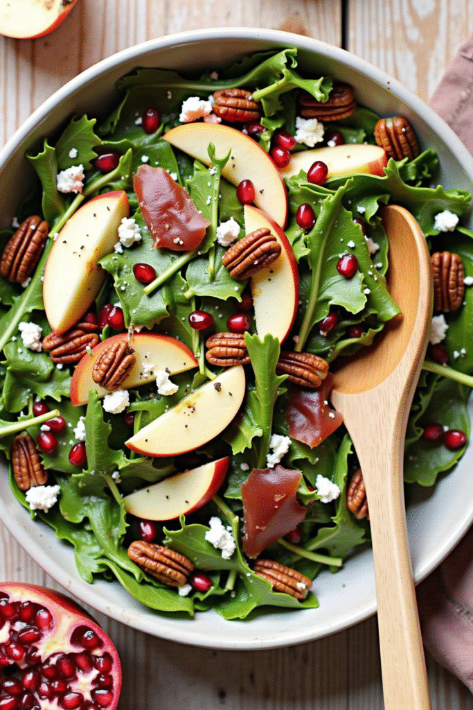 This salad is both a beautiful side and a satisfying entrée. Serve it alongside roasted chicken, pork tenderloin, or a cozy fall soup. For a vegetarian main, add quinoa or roasted sweet potato. Garnish with extra feta or a few pomegranate seeds for a festive touch.